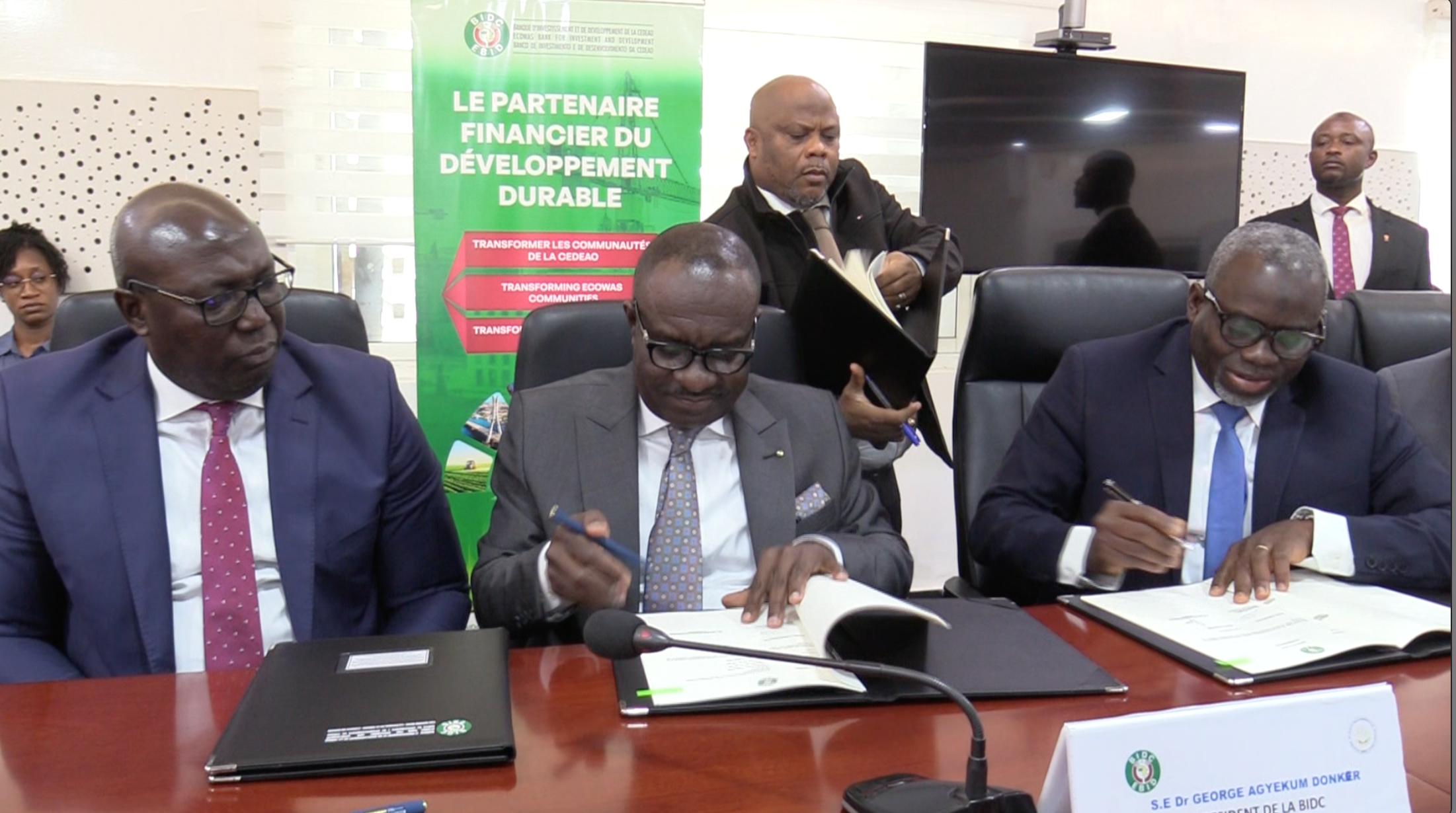 Deux accords de financement ont été signés ce lundi 10 novembre au ministère de l’économie et des finances. Les secteurs agricole et énergétique sont les bénéficiaires d’un montant de plus de 128 millions d’euros. La signature a été faite entre la BIDC, (banque d’investissement et de développement de la CEDEAO) les ministres de l’énergie, de l’enseignement technique, des finances et du plan et de la coopération internationale.