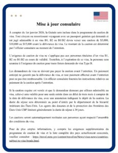 Guinée, désormais pour l’obtention d’un visa américain,  il faudrait payer une caution de 10 à 15000 dollars
